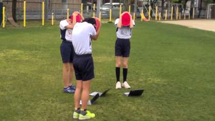 パワーアップの学習で、いろいろなストレッチを体験しました。班の友だちと体のどこがのびているか話し合いながら楽しく進めていました。