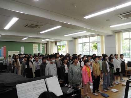 一年生を迎える会に向けて、学年で歌の練習をしました。