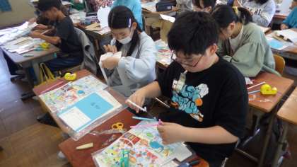 図工ではクランクの仕組みを使った作品作りに入りました。