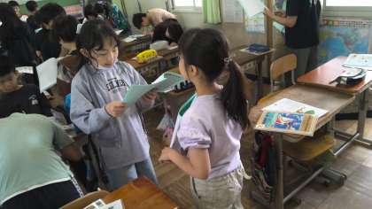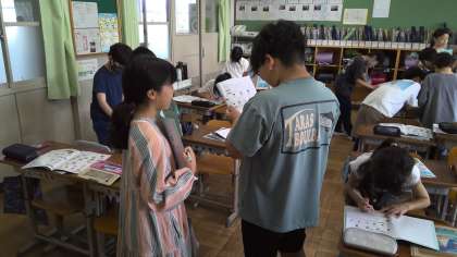 名前のつづりを尋ねたり、好きな教科を聞いたりする学習をしています。