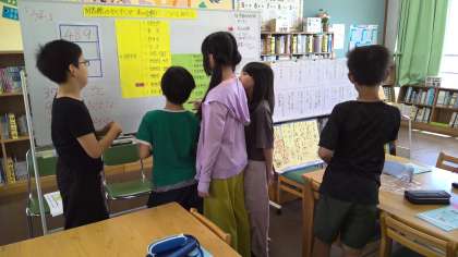 一つのキーワードから本を探すといろんな分類の場所で本が見つかるということを学習しました。班の人とキーワードの入っている本を夢中になって探していました。