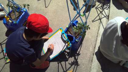 5月9日(木)、今日の生活は「ぐんぐんそだて おいしいやさい」の学習をしました。昨日植えたミニトマトを観察しました。「なんか、毛生えてる!」「トマトのにおいがする!」「葉っぱが51枚ある!」など、いろいろな発見をしていました。おいしいミニトマトができるように、大切に育てていってほしいと思います。