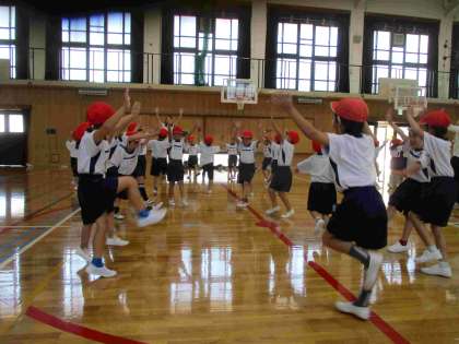 体育科の学習で、「タタロチカ」というロシアの曲を聞きながらフォークダンスを