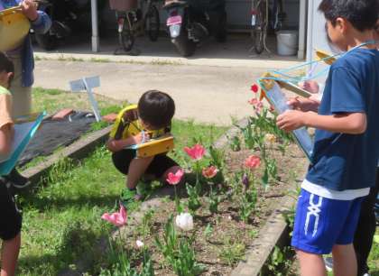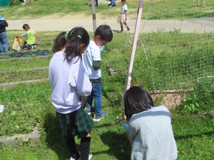 3年生からスタートした理科の学習。外に出て、生き物を探しました。いつもは気づかなかった発見もあったようです。
