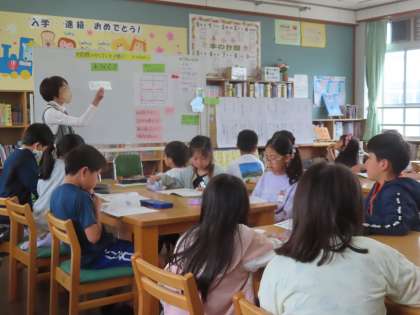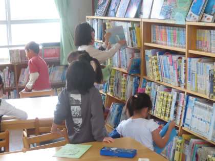 国語「図書館たんていだん」として、図書室の使い方について学習しました。本の住所であるラベルの読み方を学び、実際に図書室から本を捜索しました。