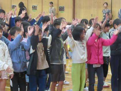 3年生からは、ハッピーソングの歌を贈りました。音楽の時間を使いながら、振付けも子どもたちが考えました。