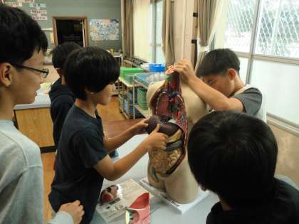人の体を模型を使って確認しました。