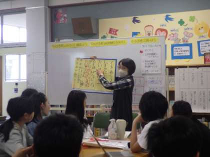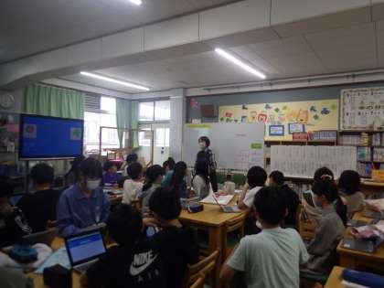 司書教諭の大石先生に図書館のオリエンテーションをしていただきました。