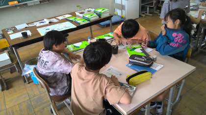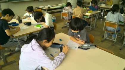ヘチマの観察をしているところです。細かいところまで観察し、気づいたことを記録していました。