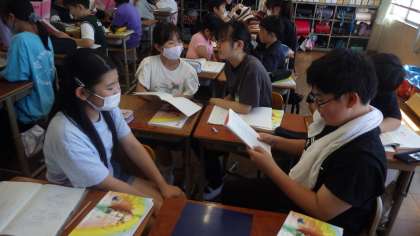 国語の学習では、インタビューに向けて、ペアで事前に練習をしあいました。