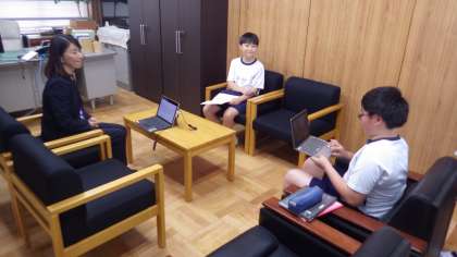 日頃、いろいろなところでお世話になっている先生に、言葉遣いを考えながら真剣に、でも楽しそうにインタビューをすることが出来ました。