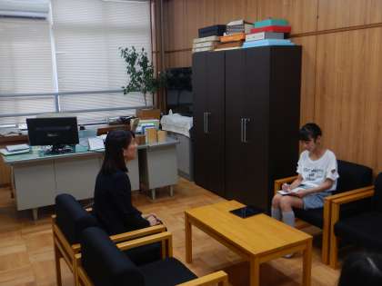 校長先生へのインタビューの様子です。