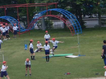 1mの高さを飛び越える子が増えてきました。
