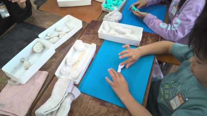 5月17日(金)、今日の図工では「にぎにぎねん土」の学習をしました。粘土を握って、どんな形に見えるか考え、作品にしました。「あ!船に見えた!」「これは、鳥みたい」など、想像をふくらませながら作品づくりをしていました。