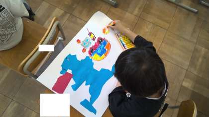 先週にやぶいた画用紙から形を見つけて貼っていきました。