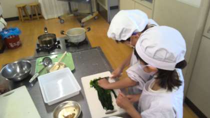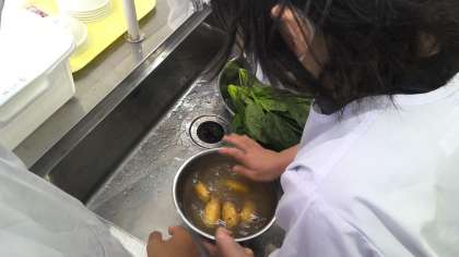 家庭科では、調理実習をしました。包丁の使い方に気をつけながら野菜を切ることができました。