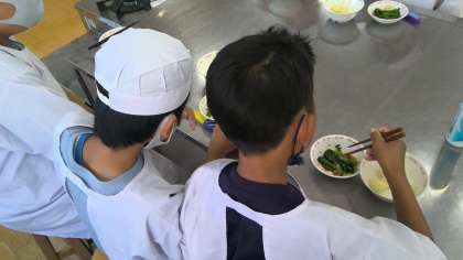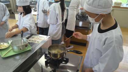 火の使い方にも気をつけ、グループの人と協力しおいしいものができました。