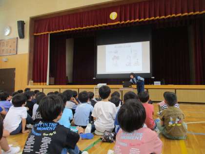警察の方と西京区役所の方が来ていただいて、交通安全教室が行われました。