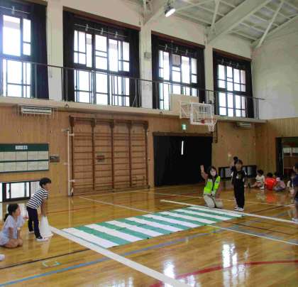 実際に体育館に用意された横断歩道や道を「右・左・右」と安全確認をしながら歩きました。