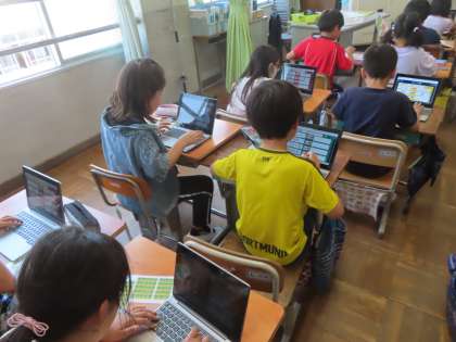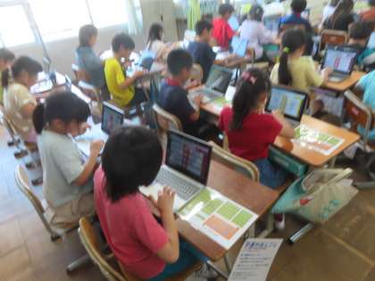 国語で学んだローマ字をいかして、タブレットの入力はローマ字入力にチェンジ!!練習を重ねる中でだんだんはやく入力できるようになってきています。
