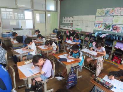 国語の最初のテストは「春風をたどって」。正しく書くことも国語では重要です。集中して、丁寧に取り組みました。