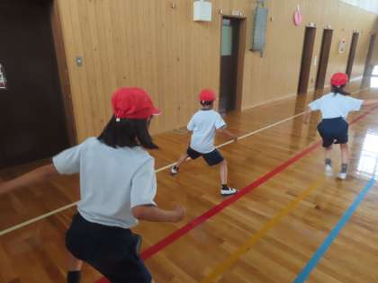 3年生では、反復横跳びにもチャレンジ。普段あまりすることのない動きに苦戦しながらも、全力で取り組んでいました。