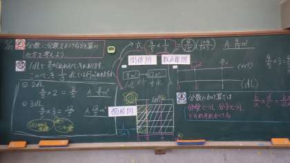 どうして分母は分母同士、分子は分子同士をかけたら答えが出るのか、面積図を使ってみんなで考えました。