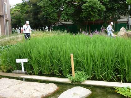夏休みのうちに,ひょうたん池の稲がぐんと成長しました。