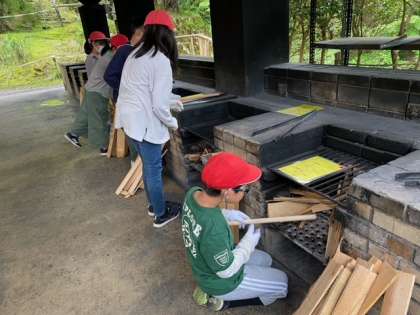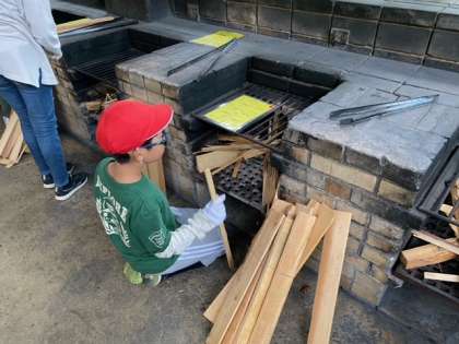 火おこし準備とても張り切ってます。