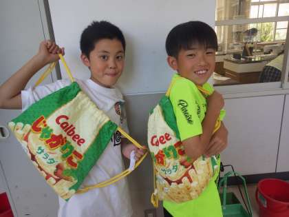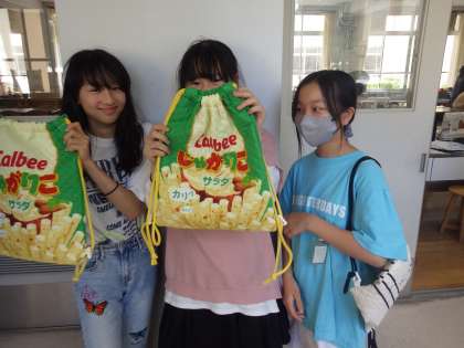 修学旅行の時に持っていくために、授業の順番を変えて取り組んでいたナップザックが完成しました。