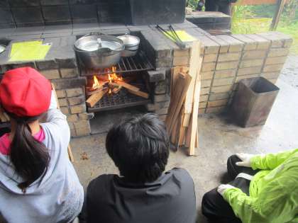 ゴシ谷ハイク、キャンプファイヤー、野外炊事の様子です。