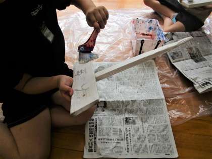 次回は手にペンキがつかないように工夫して塗るそうです。