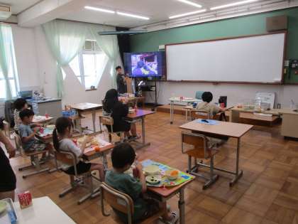 4年生以下にとっては宿泊行事の見通しがもてたようです。早く行きたい、おいしそうとつぶやきながら見ていました。