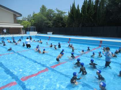 今週はかにさん歩きや、おにごっこ、電車ごっこを通して、水と仲良くなりました。