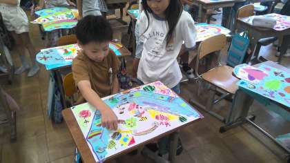 「ふしぎなたまご」の鑑賞をしました。友だちと作品の交流をしました。友だちから作品をたくさん褒めてもらって、とても嬉しそうな子どもたちでした。