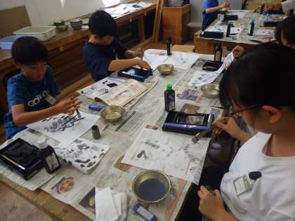 図工の時間に、墨を使って作品作りに取り組んでいます。