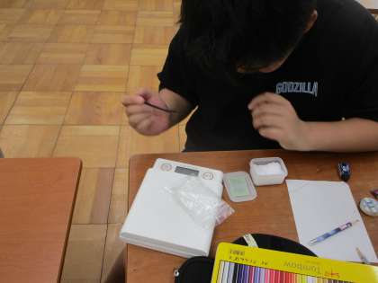 予想が合っているのかを確かめるために、塩の重さ分が水溶液に残っていることを調べる実験を行いました。2人で分担して進めていたところがよかったです。