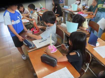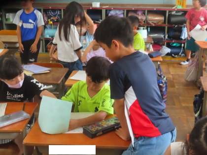お互いの作品を見合いました。それぞれが自分の作品の工夫を一生懸命に伝えていました。