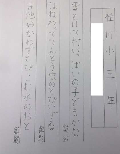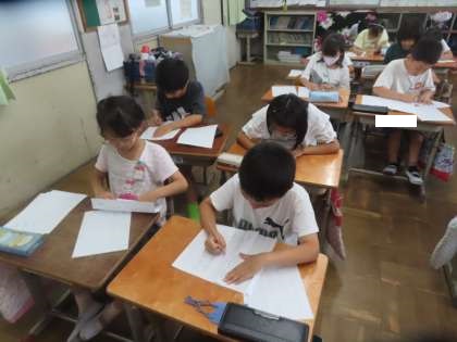 硬筆書写にチャレンジしました。見本をしっかりよく見ながら、一字一字を大切に取り組みました。