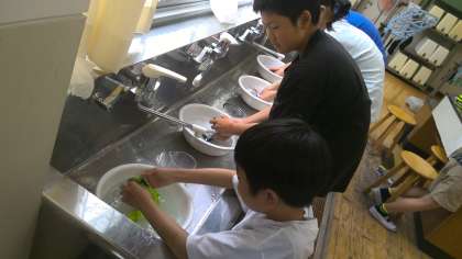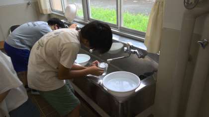 家庭科の学習で靴下を洗う洗濯実習を行いました。