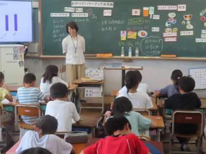 夏休みに向けて、正しいおやつの食べ方を学習しました。みんなの大好きなアイスやジュースにはたくさんの砂糖が含まれています。夏休みには、身体によいおやつを食べられるといいですね。