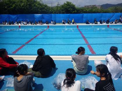 今日は暑い中でしたが、命を守る学習「着衣泳」をおこないました。