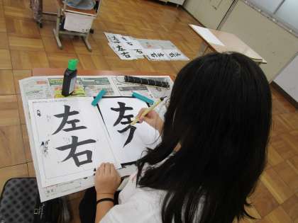6年生は、普段左利きですが、今回は右手で書くことに初めて挑戦しました。初めてとは思えないほどバランスよく書くことができ、今後も右手で書いていくことに自信を得たようです。