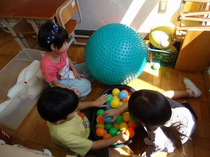 プレイルームにあるボールを全部運んできて、教室の一角を小さい部屋にして…。