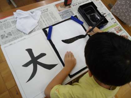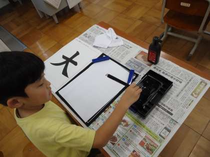 毛筆の学習にもすっかり慣れて、一人で準備をすることができるようになりました。
