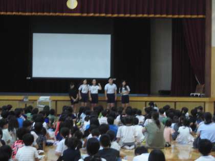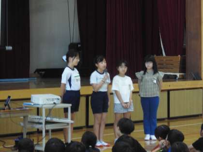 児童集会では、司会進行や各委員会から連絡で全校の前に立って