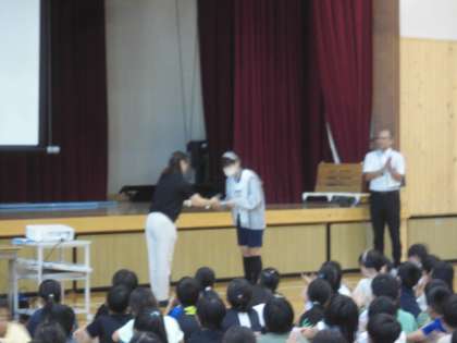 朝会では、絵画で表彰されたり、読書1万ページ達成したりと