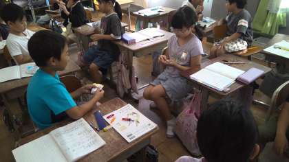 算数では、「かけ算(1)」の学習をしています。九九カードを使って、2の段の九九の練習をしました。上がり九九はスラスラ言える子もいますが、下がり九九、バラ九九はなかなか難しいようです。九九の学習はまだ始まったばかり!これからも頑張っていきます!