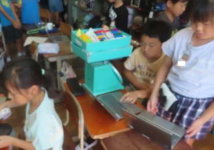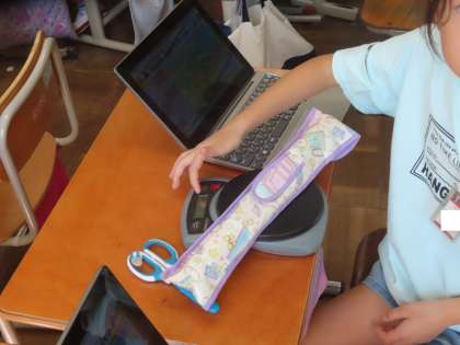 算数「重さ」の学習で、様々な道具を使って、重さをはかりました。重さをはかる前に自分で重さを予想して行ったので、予想外の結果が出てくると驚きの声もあがっていました。