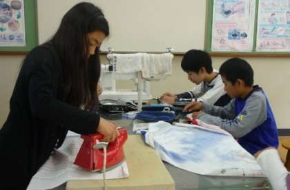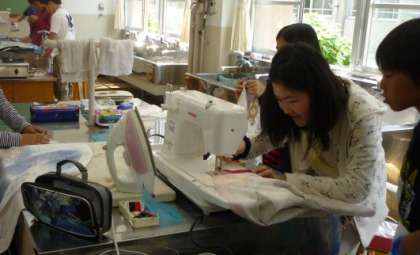 6年生は家庭科でエプロンを作っています。